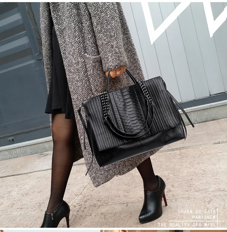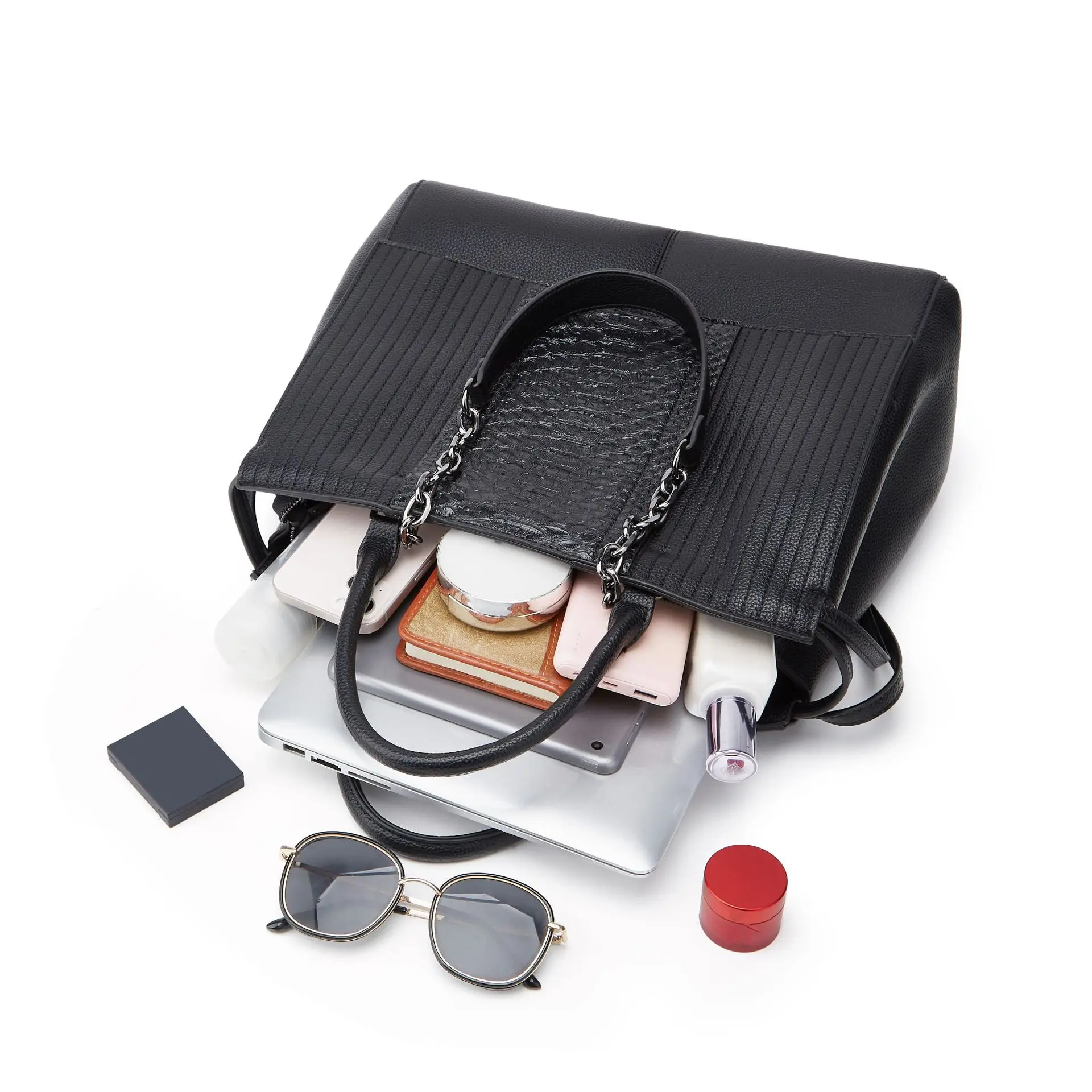 Luxury chain shoulder bag womens large capacity tote bag crocodile pattern satchel purse