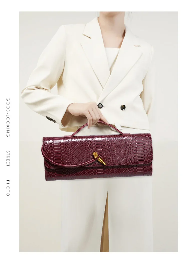 Luxury Design Top-Handle Bag For Women Evening Handbag Long Purse, Crocodile Pattern Crossbody Shoulder Bags Fashionable Outfits