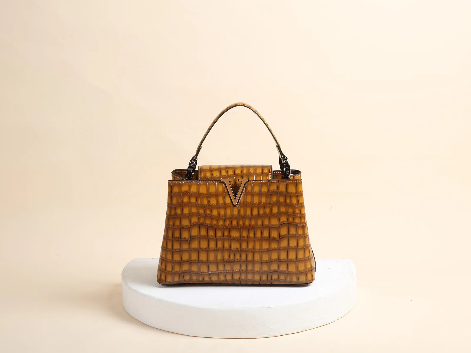 New Bright Leather Stone Pattern Women's Handbag Fashion Shoulder Messenger Bag Crocodile Pattern Portable Shell Bags 2025