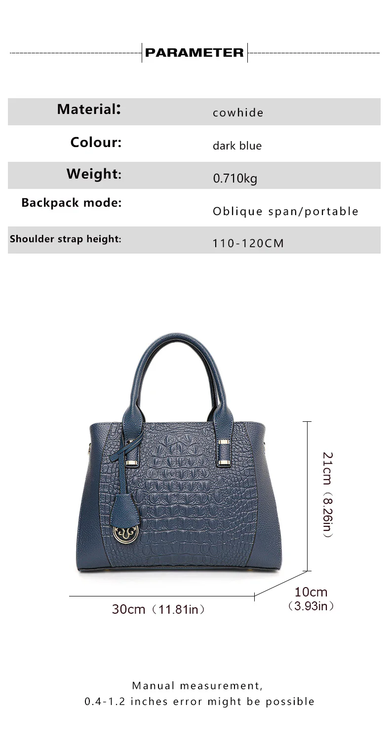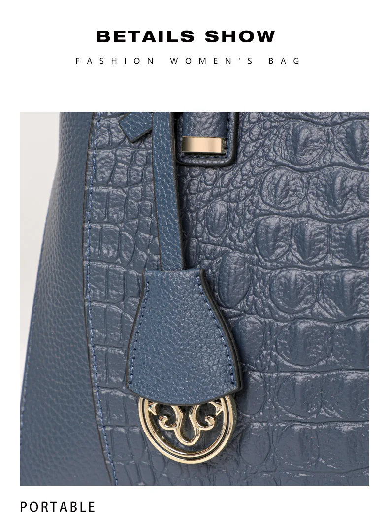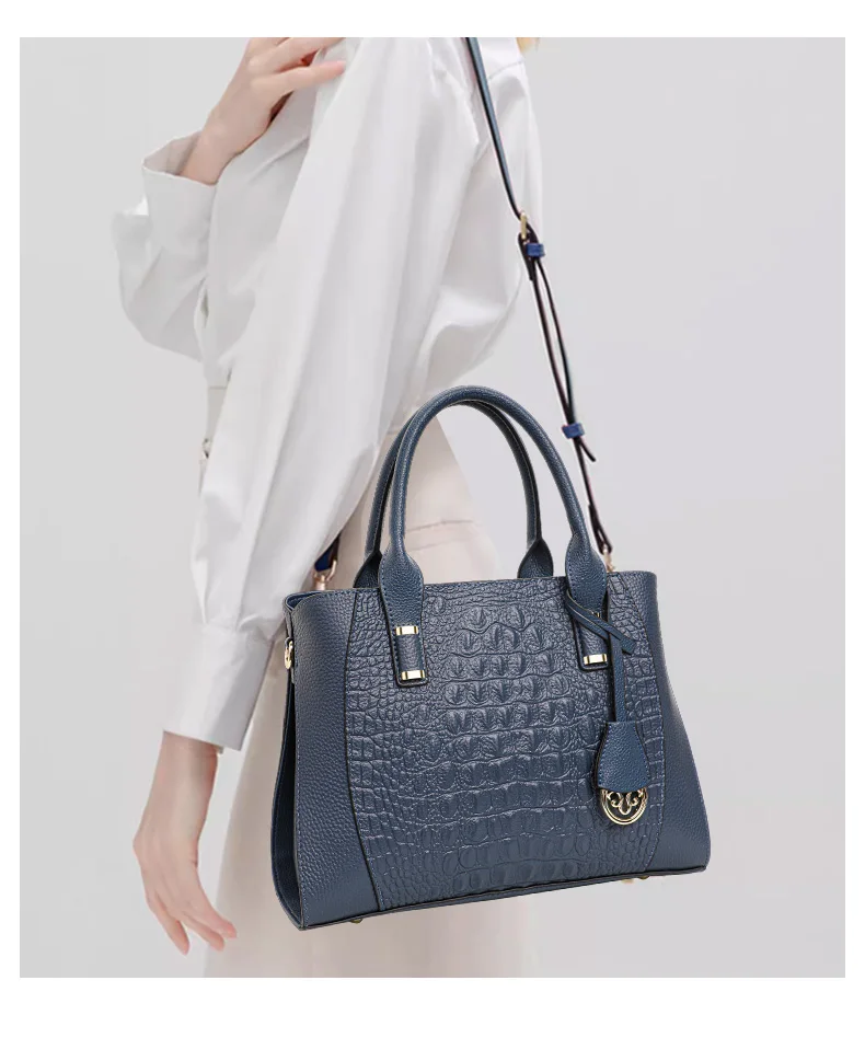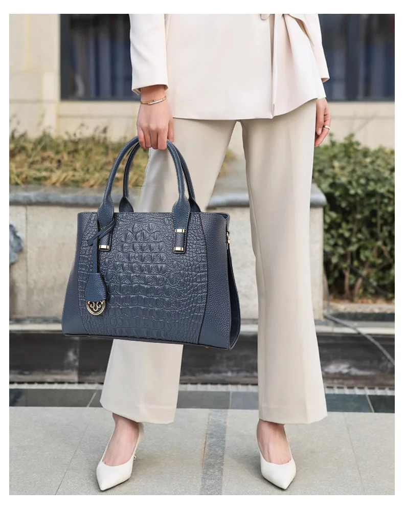 New Crocodile Pattern Women's Handbag Fashionable and Versatile, High Grade, Large Capacity Cowhide Commuter Bag