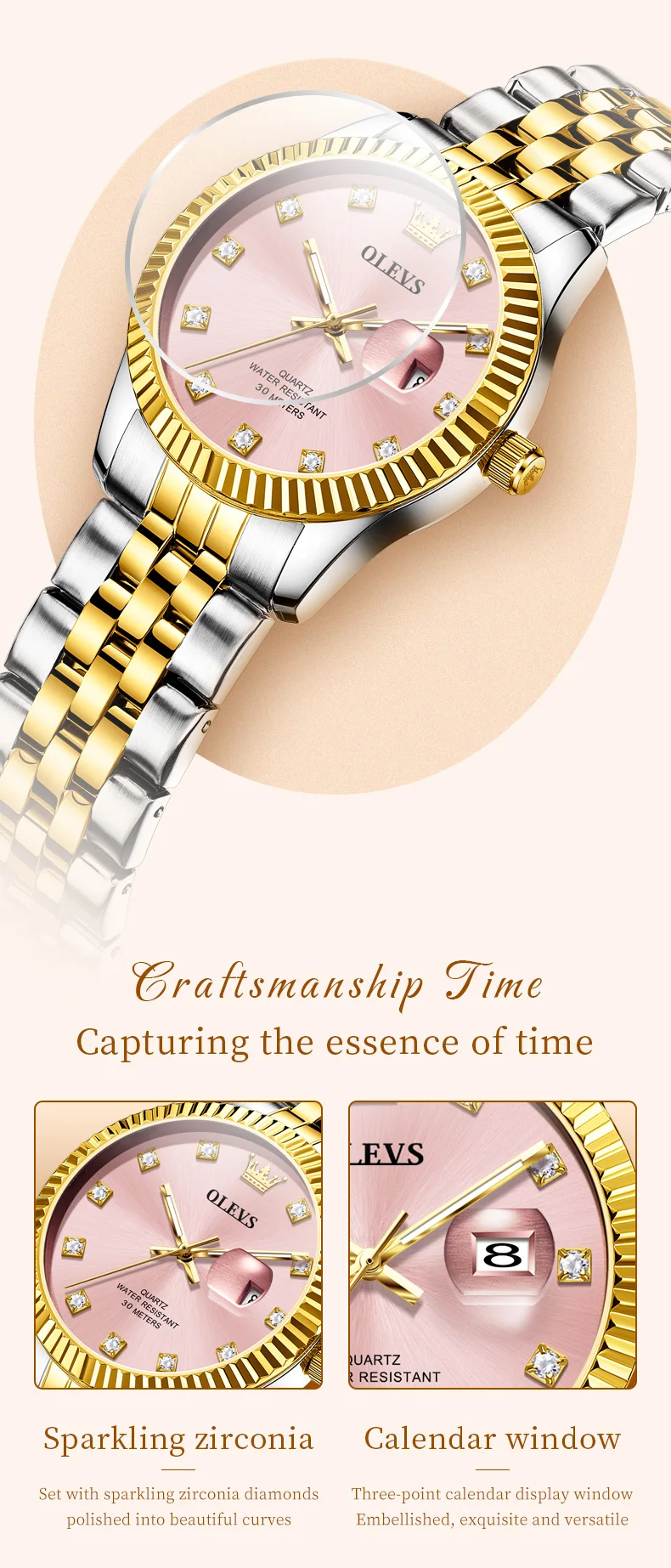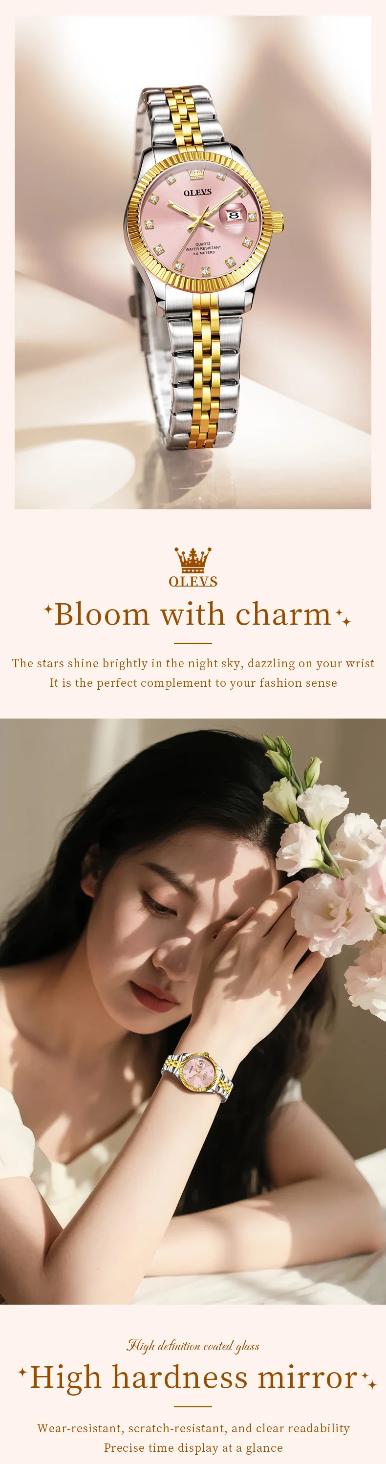 OLEVS 3705 Watches for Women Luxury Top Brand Original Quartz Woman Watch Calendar Waterproof Diamond Dial Elegant Ladies Watch