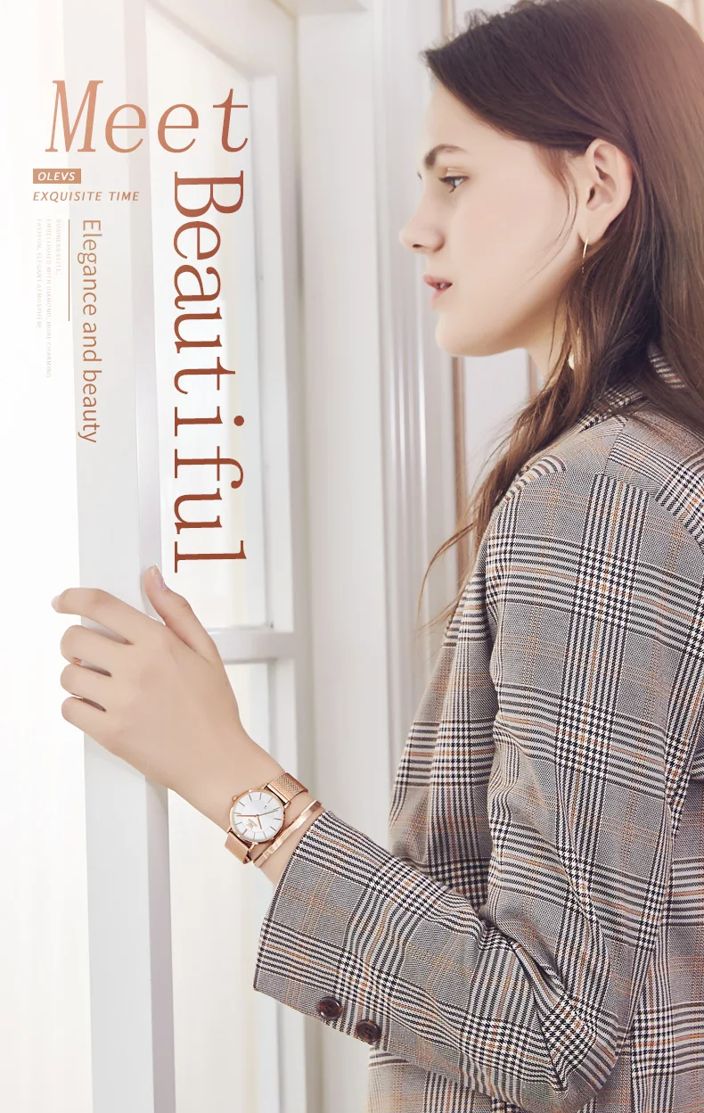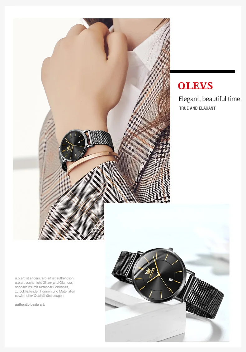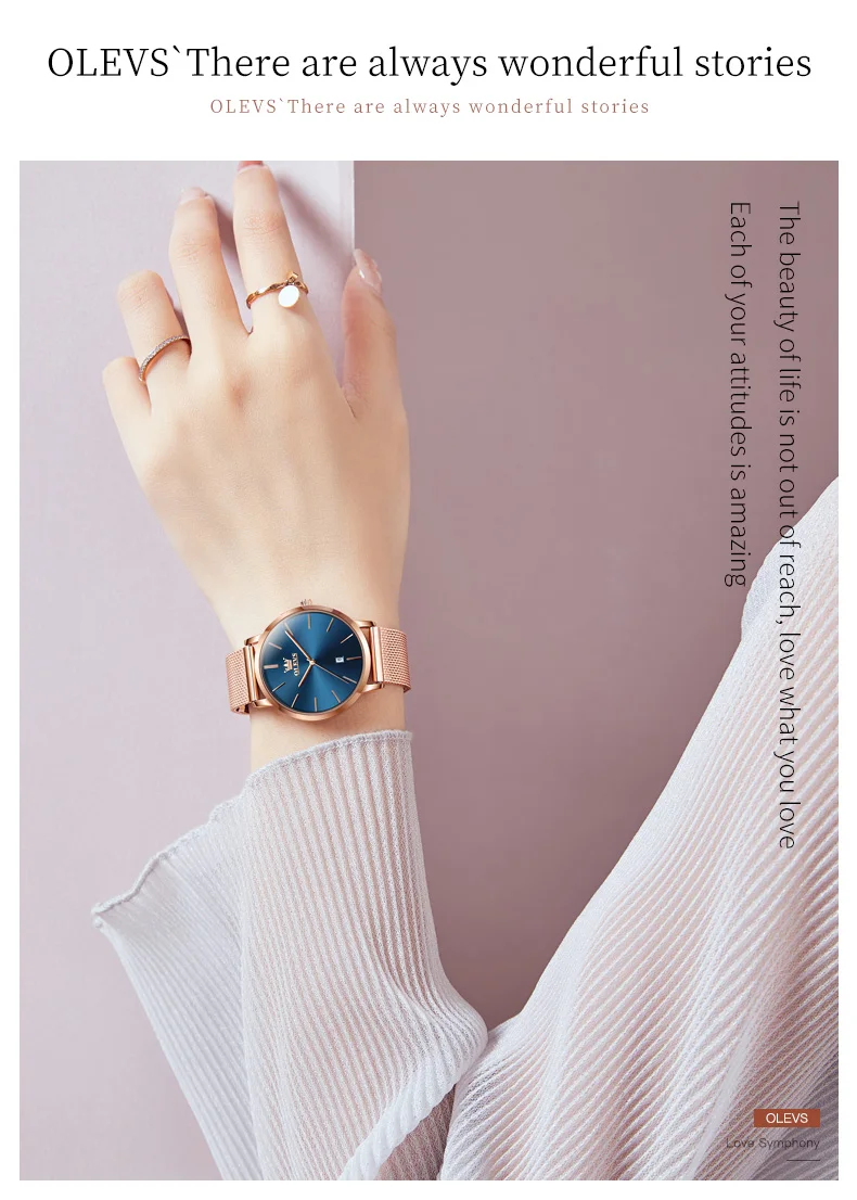 OLEVS 5869 Women Watch Original Brand Simple Mesh Belt Quartz Watch Automatic Date Waterproof Luminous Watches For Women Box