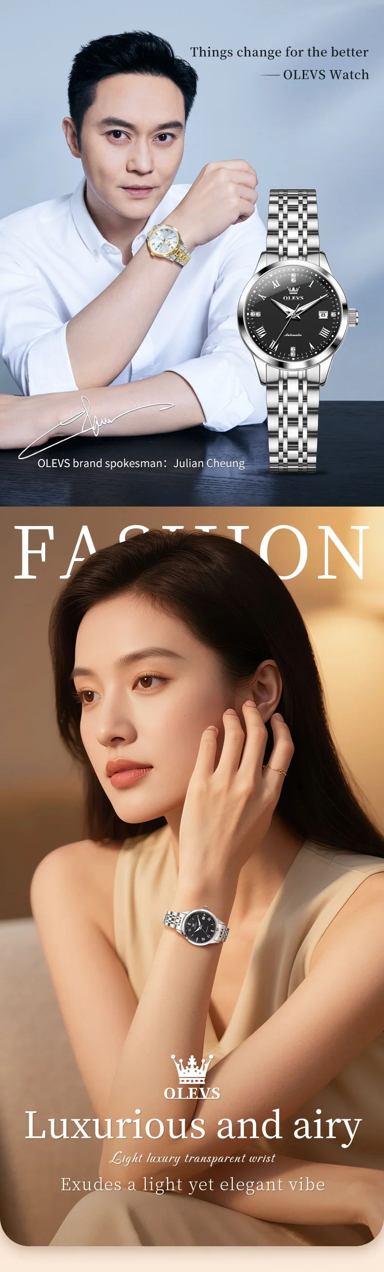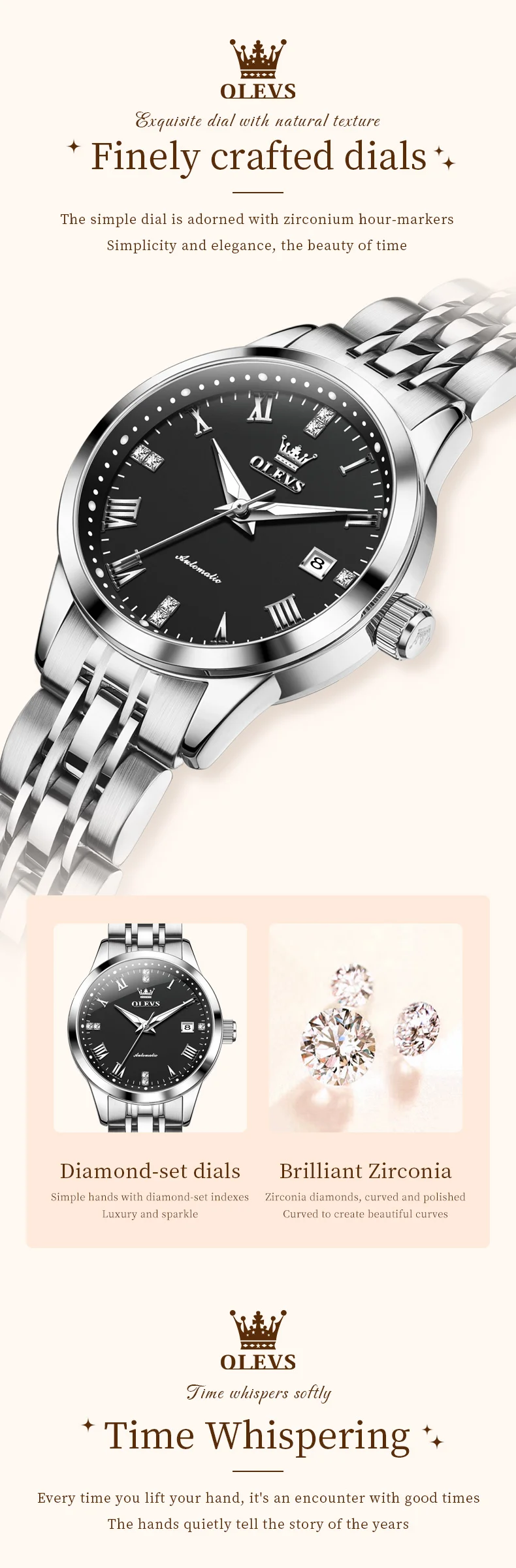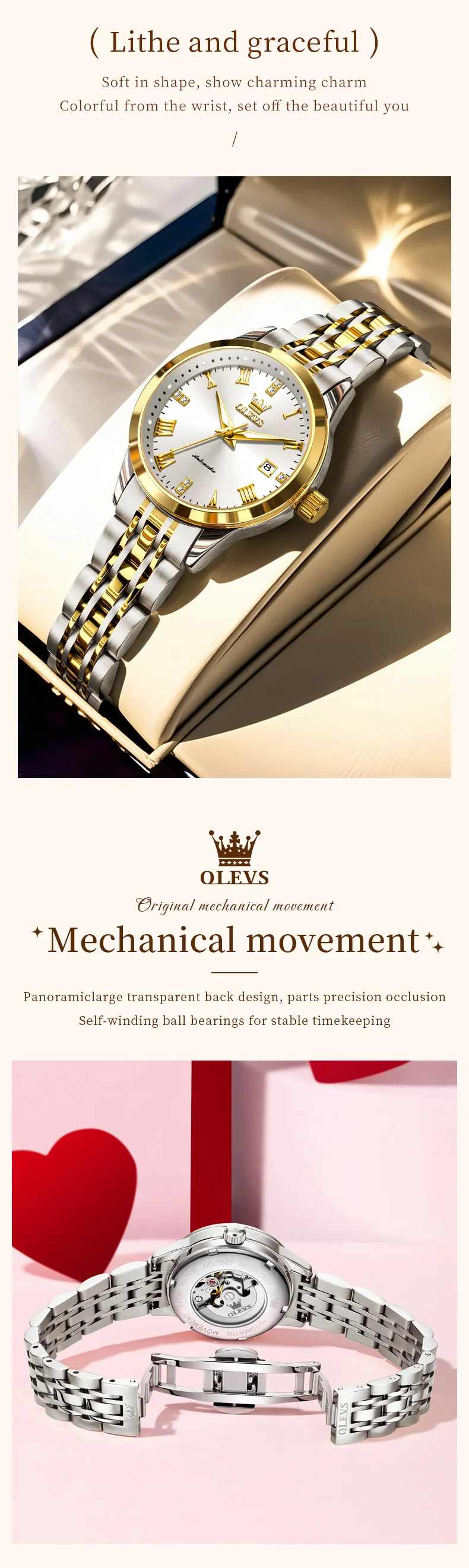 OLEVS 7062 Woman Watch Elegant Stainless Steel Waterproof Date Automatic Watch for Women Original Luxury Mechanical Wristwatches