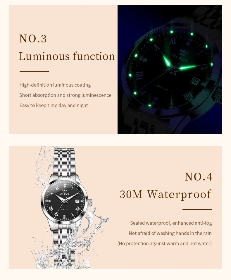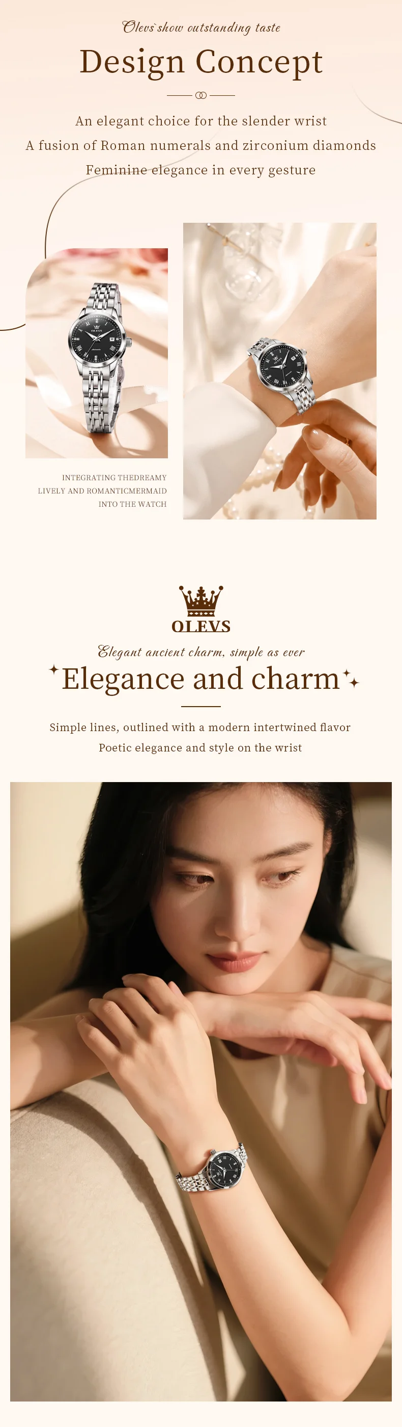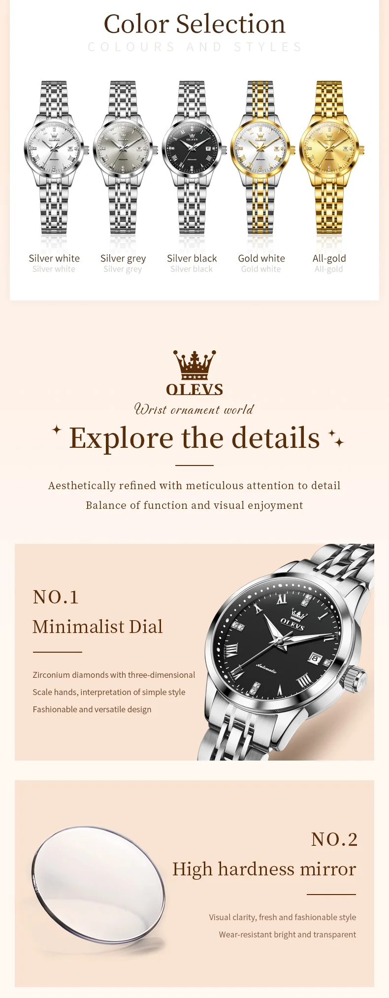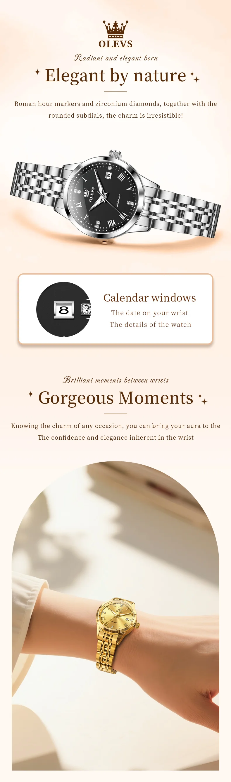 OLEVS 7062 Woman Watch Elegant Stainless Steel Waterproof Date Automatic Watch for Women Original Luxury Mechanical Wristwatches
