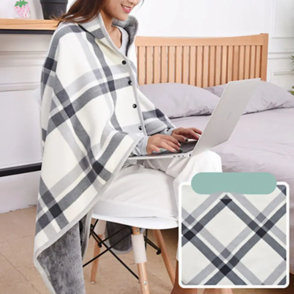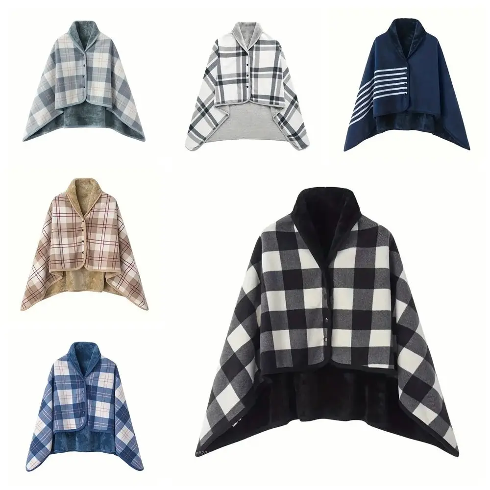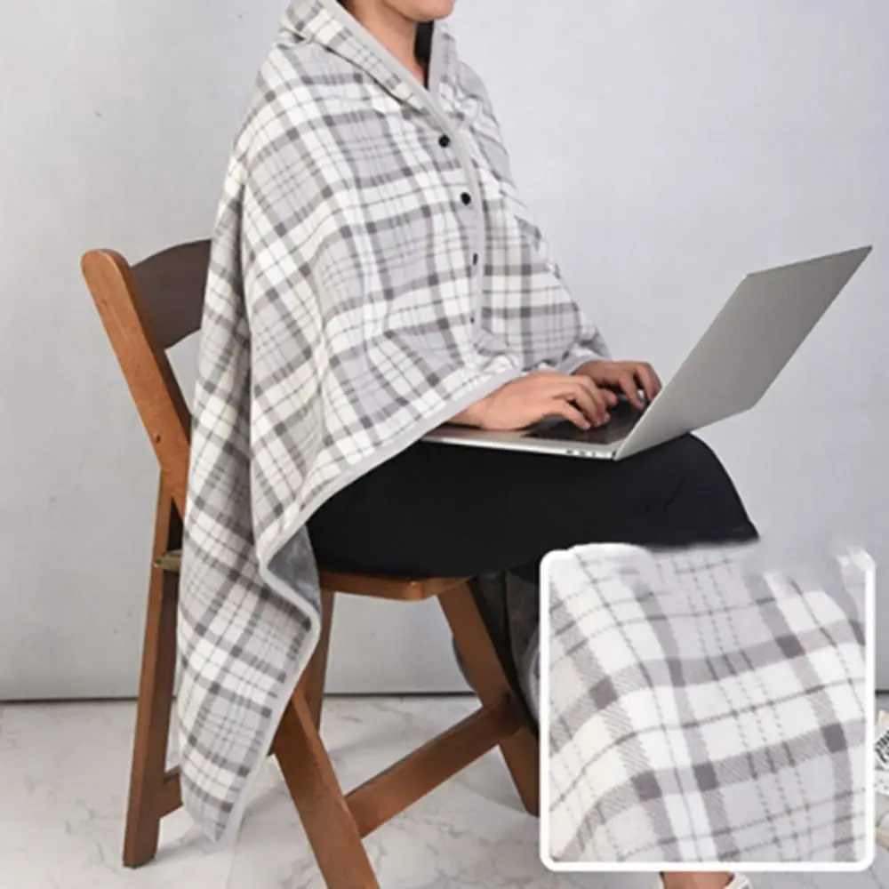 Throw Blankets Plaid Blanket Wearable Blanket Thicken Soft Home Shawl with Button Polyester Flannel Blanket Travel